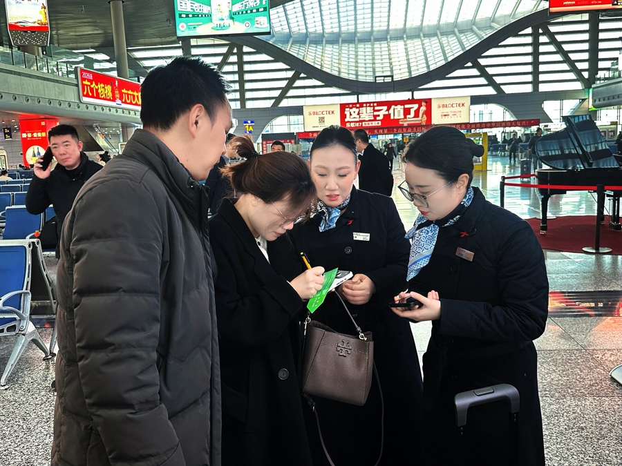 升级后的空铁联运服务突破以往必须架设专线、建设实体柜台的模式,创新搭建“数字航站楼”,仅需一部手机与两台轻便的蓝牙打印机,工作人员五分钟内即可“随时随地”为旅客高效办理值机、打印登机牌与行李条,真正实现了“从高铁始发站开始解放双手”的轻松出行。旅客可登录东方航空App或微信小程序进行一键预约。